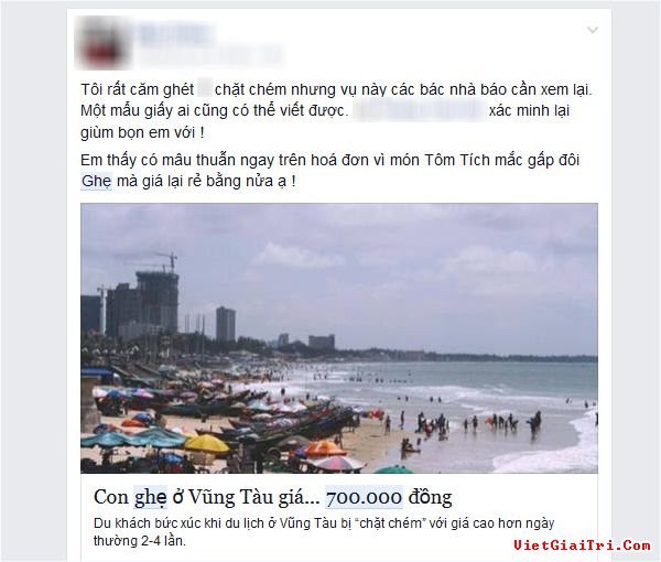 Vừa qua, truyền thông và mạng xã hội trở nên “nóng” hơn trước vụ việc “con ghẹ giá 700.000” đồng. Đó là lời kể của một thực khách tên Phạm Văn Long (ngụ quận 7, TP.HCM) khi cùng nhóm bạn đi du lịch ở TP.Vũng Tàu (tỉnh Bà Rịa – Vũng Tàu) vào dịp Tết Dương lịch 2016.
