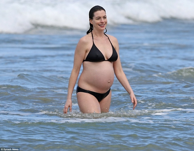 Mới đây, cô đào nóng bỏng Anne Hathaway đã diện bộ bikini hai mảnh màu đen hết sức quyến rũ khoe bụng bầu trong kì nghỉ đầu năm mới trên bãi biển Hawaii. Trong thời kì mang thai tháng thứ 7, top 50 nữ diễn viên đẹp nhất thế giới đã có cùng chồng là sản xuất Adam Shulman có những ngày nghỉ ngơi thoải mái và nhẹ nhàng trên bãi biển Hawaii. Dù đang mang thai nhưng Anne Hathaway khiến cánh phóng viên và người hâm mộ bất ngờ vì nhan sắc không son phấn khá xinh đẹp và làn da trắng sáng.