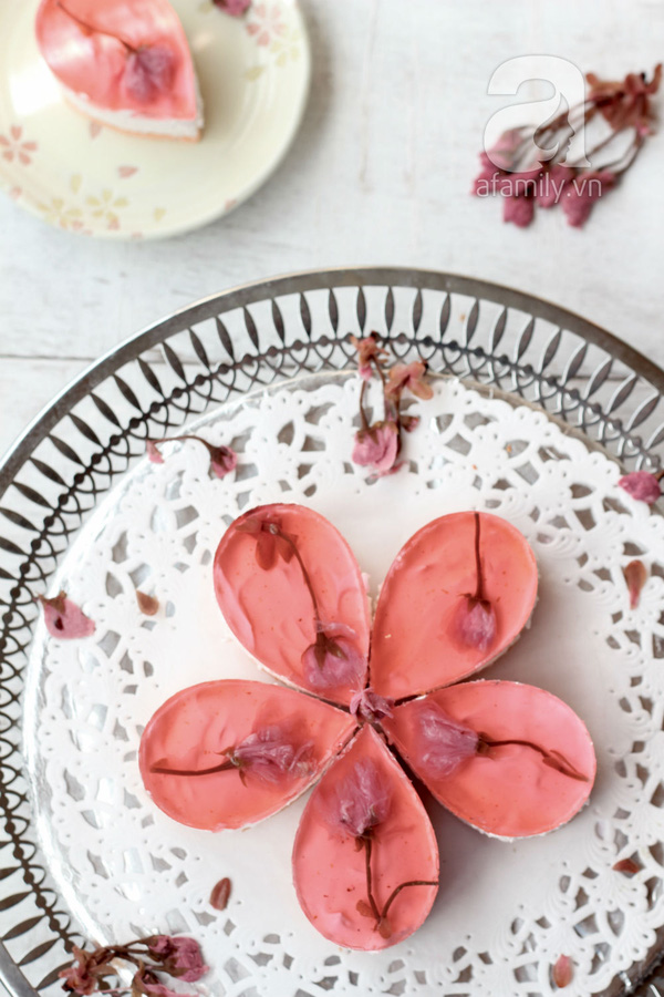 hoa anh đào, làm bánh, làm bánh không cần lò nướng, làm bánh mousse, món nhật, món nhật ngon