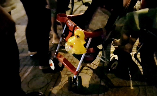Mọi người tìm thấy mảnh giấy trên xe đẩy người phụ nữ để lại trên cầu. Ảnh: Hải Hiếu