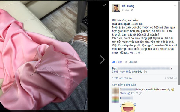 Mới đây, trên trang cá nhân đầy cảm hứng của một nam Facebooker, bức ảnh chụp chiếc quần áo dài bị rách được chính tay anh khâu vá cũng như những chia sẻ vừa hài hước, vừa thâm thúy về câu chuyện đàn ông làm việc nhà đã truyền cảm hứng cho nhiều người, đặc biệt là các chị em.