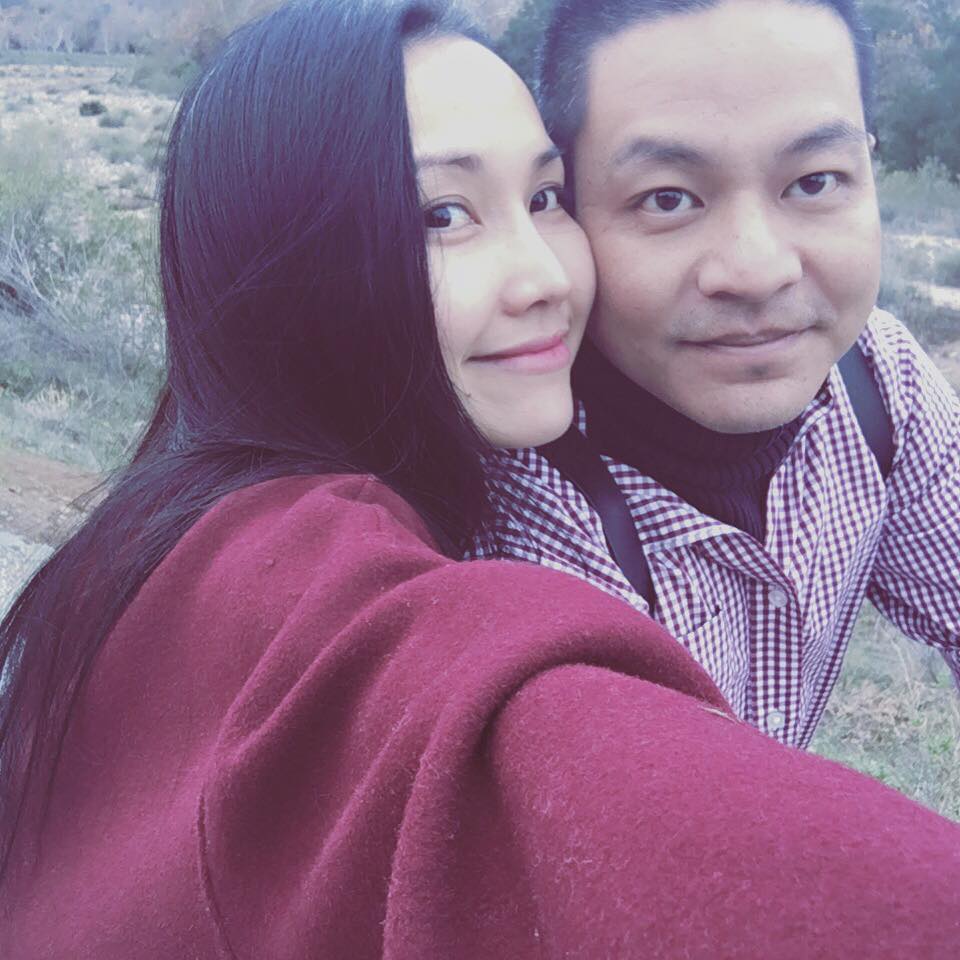 Kim Hiền và chồng chụp ảnh chung đầy tình cảm.