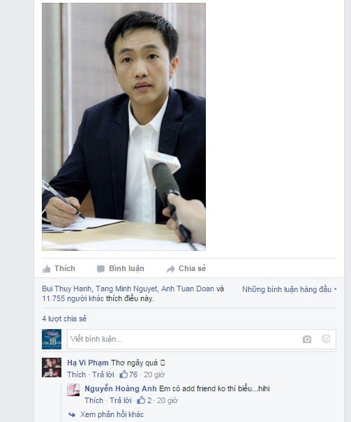 Mới đây, trên trang cá nhân, Cường đô la đăng hình ảnh của anh khi đang trả lời phỏng vấn lên trang cá nhân. Nhiều người khen doanh nhân càng ngày càng trẻ ra và trong đó có cả Hạ Vi – bạn gái mới của anh. Hạ Vi comment dưới bức ảnh của Cường đô la với dòng chữ “thơ ngây quá”.