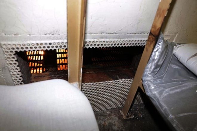 Bức ảnh được Văn phòng Cảnh sát trưởng quận Cam công bố cho thấy lỗ hổng những tên tù nhân chui qua để bò vào đường ống. (Nguồn: AP)