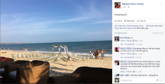 hời gian gần đây, Cường đô la và Hạ Vi thoải mái hơn khi chia sẻ hình ảnh riêng tư cũng như những cử chỉ thân mật trước bạn bè và đám đông. Hạ Vi còn đăng tải hình ảnh bó hoa hồng Cường đô la tặng nhân kỉ niệm 3 tháng yêu nhau hay ảnh diện đồ đôi trong thang máy nhận được nhiều quan tâm của dư luận.Mới đây nhất trên trang cá nhân của mình Cường đô la đăng một hình ảnh chuẩn bị cho một đám cưới trên bãi biển khiến mọi người xôn xao. Nhiều người cho rằng liệu có phải đại gia phố núi đang chuẩn bị cho đám cưới với “mỹ nữ vạn người mê” Hạ Vi hay không? Tuy nhiên, cũng có nhiều ý kiến cho rằng, đây có lẽ chỉ là hình ảnh Cường đô la ghi lại khi đi đám cưới bạn mà thôi.