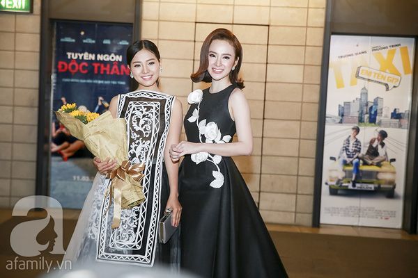 Lần này, Angela Phương Trinh xuất hiện lẻ bóng mà không có sự hộ tống của bạn diễn Trường Giang - người đóng cặp với cô trong "Taxi em tên gì?"