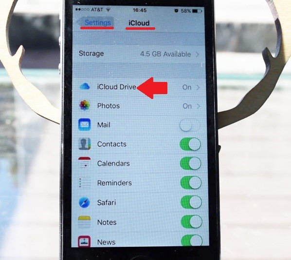 Mẹo iOS 9: Vào mục Settings => iCloud rồi bấm iCloud Drive.