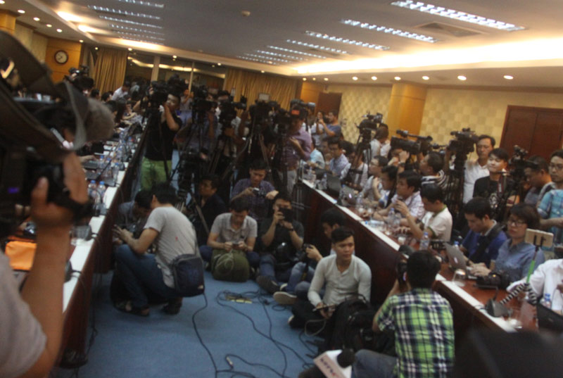 Từ 18h40, rất đông phóng viên báo đài có mặt sẵn sàng cho cuộc họp báo