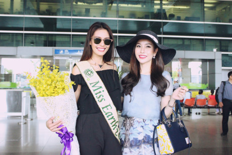Hình ảnh của Hoa hậu Trái đất 2015 tại sân bay Tân Sơn Nhất sáng nay. Đón cô có siêu mẫu Ngọc Tình, Kiều Ngân và Hoa hậu Lam Cúc.