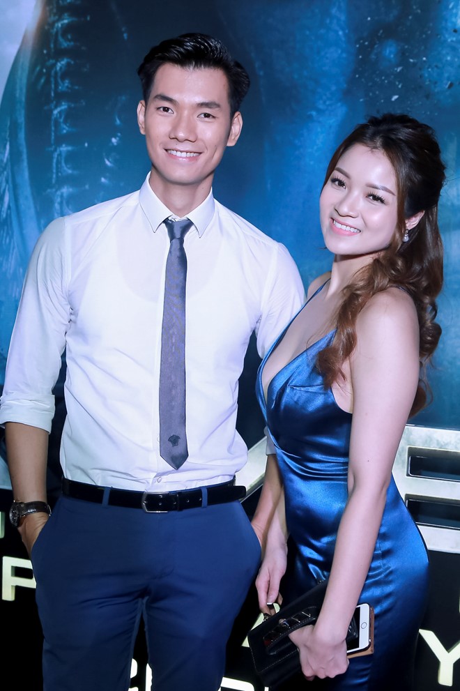 Thủy Top mặc sexy, khoe vòng 1 gợi cảm khi tham dự buổi công chiếu. Hot girl nổi tiếng một thời hào hứng chụp ảnh cùng Nhan Phúc Vinh.