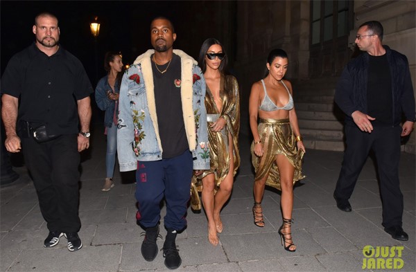 Tối 29/9, vợ chồng Kim Kardashian – rapper Kanye West cùng chị gái Kourtney tới bữa tiệc của nhà mốt Balmain ở một nhà hàng tại Paris, Pháp. Chị em nhà Kardashian đang có những ngày dự Tuần lễ thời trang Paris tại đây, còn Kanye cũng bận rộn với show thời trang riêng.