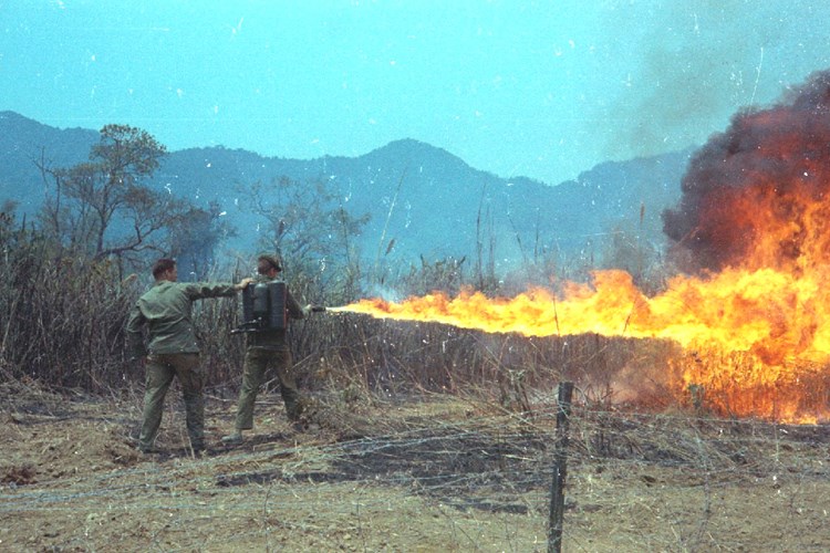 Giống với bom napalm, súng phun lửa cũng là một thứ vũ khí được Mỹ sử dụng rộng rãi trong chiến tranh Việt Nam. Thứ vũ khí này cũng đã bị cấm cùng với bom napalm sau khi chiến tranh Việt Nam kết thúc. Nguồn ảnh: Armchair.