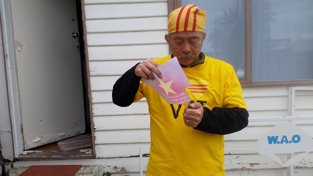 Old  Wink Người Việt làm gì với lá cờ Cộng Sản VC, ảnh Hồ và Lú