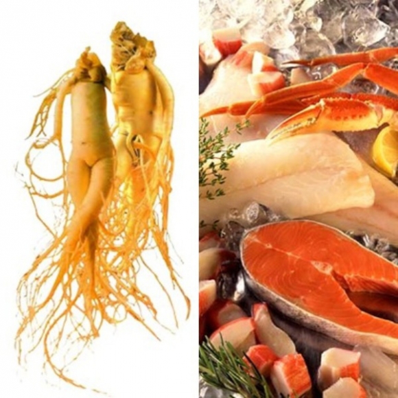 27. Nhân sâm và hải sản kỵ nhau: Khi uống nhân sâm, nên kiêng ăn tất cả các loại củ cải (đỏ, trắng, xanh...) và hải sản đều là cấm kỵ sau khi uống nhân sâm. Theo y học cổ truyền, củ cải và đồ biển đại hạ khí, còn nhân sâm đại bổ khí, hai thứ triệt tiêu lẫn nhau, gây hại cho người sử dụng. Dù là sắc hay hấp cách thủy, cũng không được dùng đồ kim loại để nấu nhân sâm. Sau khi dùng loại dược liệu này, không được uống trà, vì trà sẽ làm giảm tác dụng của nhân sâm.