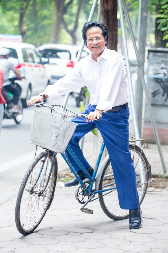 Danh ca Chế Linh thích thú khi đi xe đạp