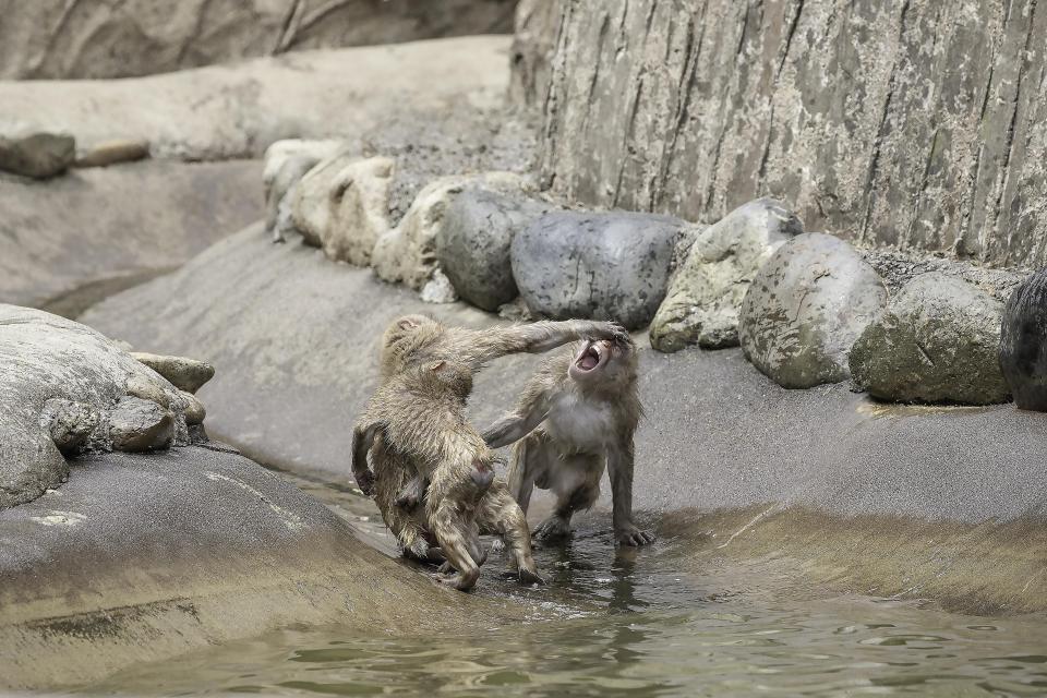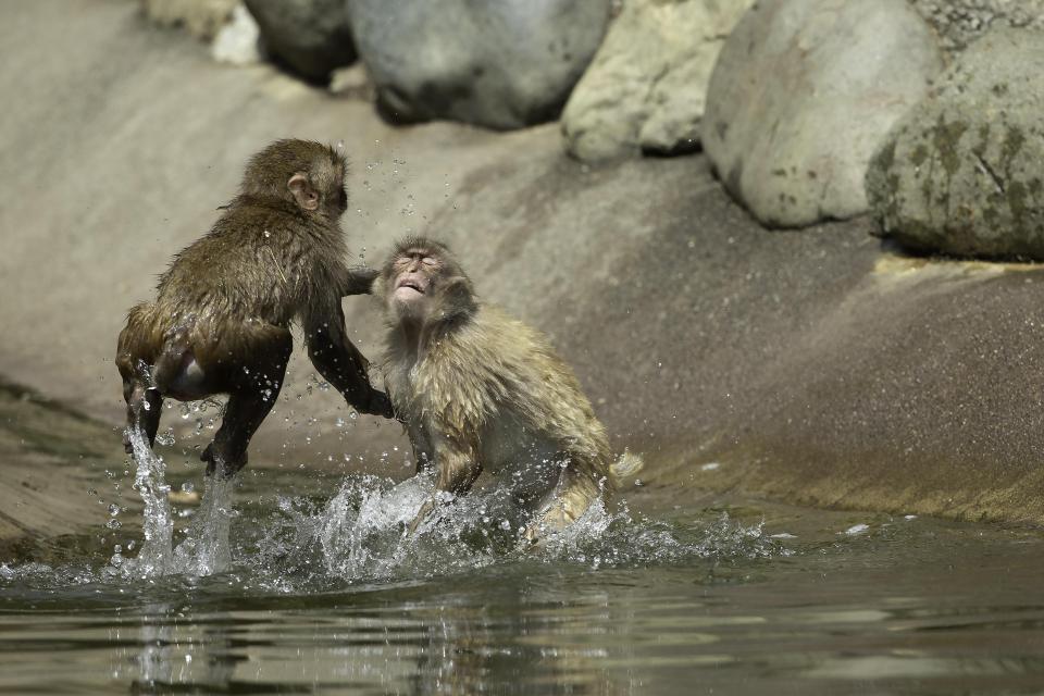 Những bức ảnh dưới đây cho thấy những con khỉ Nhật Bản, hay còn được gọi là khỉ tuyết, vui chơi thỏa thích tại Sở thú Tama ở Tokyo.