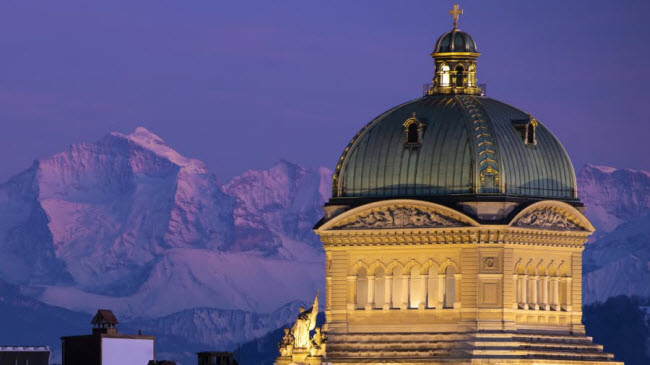 Màn đêm bắt đầu buông xuống cung điện hoàng gia tại thành phố Bern, Thụy Sĩ.
