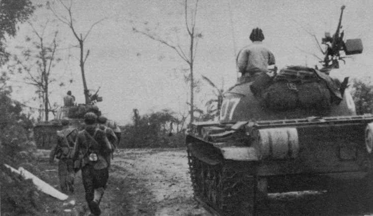 Khác với bộ binh, xe tăng cần có đường xá để đạt tốc độ di chuyển nhanh nhất - tuy nhiên đường xá ở miền Bắc Việt Nam thường có núi cao bao quanh, quân và dân ta thường tổ chức đánh du kích, tấn công xe tăng địch từ hai bên sườn núi cạnh đường giao thông. Nguồn ảnh: Tiexue.