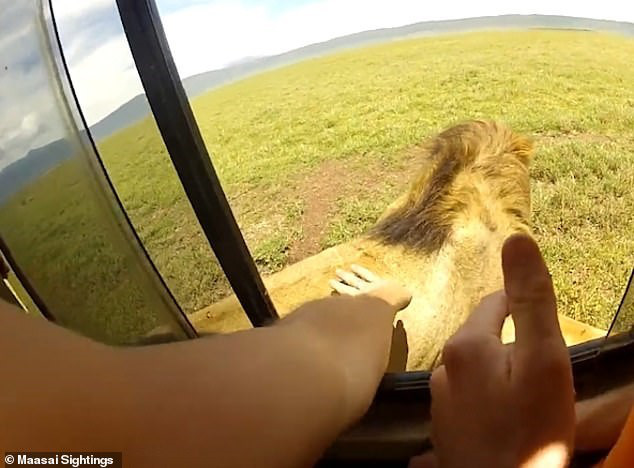 Cảnh quay gây sốc được đăng tải trên Massai Sightings cho thấy một du khách nghiêng người ra khỏi cửa sổ xe để vuốt ve một con sư tử ngồi cạnh xe của họ trong công viên quốc gia Serengeti ở Tanzania. Con sư tử khi đó đang quay mặt về phía xe họ và nằm khá gần xe của vị khác.