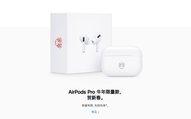Để chào mừng tết Tân Sửu sắp đến, Apple đã ra mắt AirPods Pro phiên bản Limited Edition tại một số quốc gia Châu Á. Trong đó có Trung Quốc, Singapore, Đài Loan và Malaysia. Theo 12 con giáp, năm 2021 tương ứng với tuổi trâu, do đó mà Apple đã thêm vào biểu tượng một chú trâu rất đáng yêu.