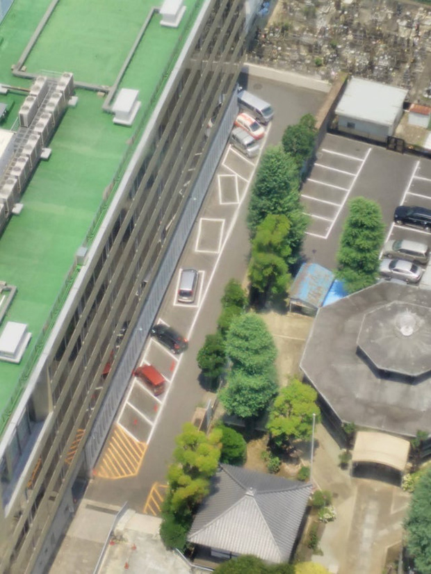 Một bãi đỗ xe với thiết kế siêu độc lạ ở Nhật, trong đó mỗi chiếc ô tô sẽ đậu ở vị trí khác nhau tại ô kẻ sẵn