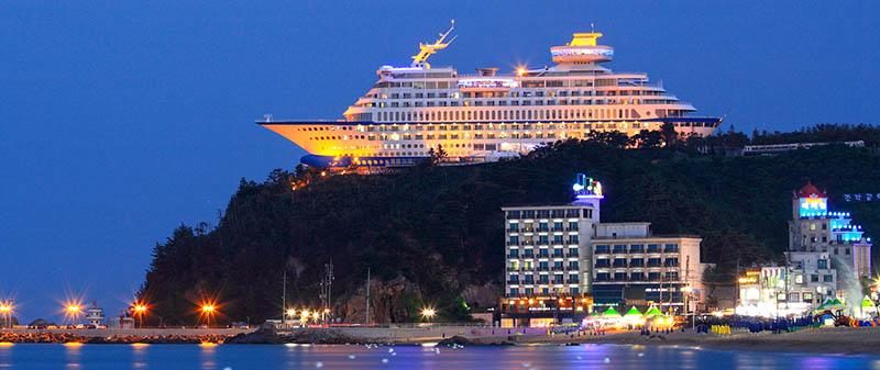 Sun Cruise Resort là một con tàu du lịch lớn, nằm trên đỉnh núi Jeongdongjin, Hàn Quốc. Thực ra, đây là một khách sạn sang trọng, nổi tiếng bậc nhất châu Á. Nó là một con tàu được trang bị đầy đủ tiện nghi, có cabin và cửa sổ nhìn ra toàn cảnh vịnh Donghe.