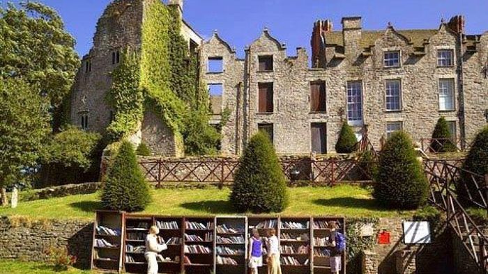 Hay- on- Wye, bạn sẽ cần có đủ thời gian để tham quan hết nơi được mệnh danh là "thị trấn sách". Với hơn 20 hiệu sách nằm dọc theo những con đường rải sỏi, Hay- on- Wye chắc chắn làm bạn thích thú. Tháng 5 hàng năm, nơi đây tổ chức lễ hội văn học thu hút nhiều du khách. Ảnh: Los Angeles Times.