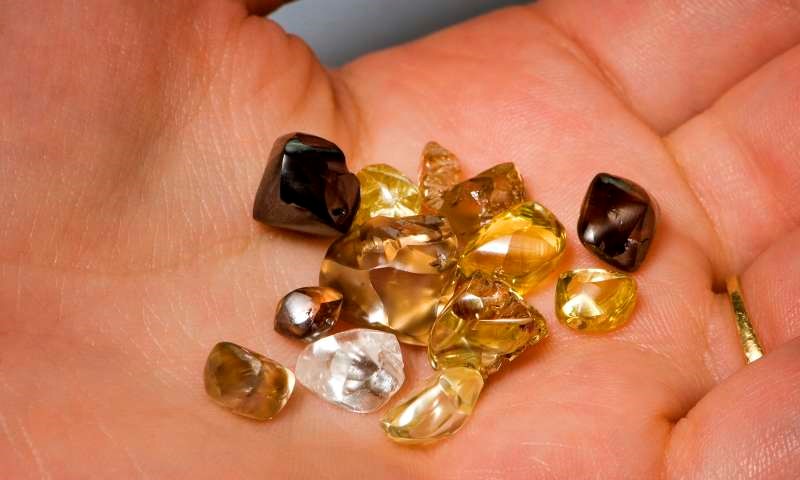 Kể từ khi Công viên Crater of Diamonds đi vào hoạt động năm 1972, đã có hơn 30.000 viên kim cương được khai quật bởi những du khách tới tham quan. Du khách cũng có thể tìm thấy các loại đá quý khác, chẳng hạn như thạch anh tím và ngọc hồng lựu. Công viên Crater of Diamonds có Trung tâm Khám phá Kim cương giúp những người săn kim cương phát hiện những viên kim cương chưa được đánh bóng trong tự nhiên. Các nhân viên kiểm lâm của công viên Crater of Diamonds được đào tạo để giúp du khách xác định bất kỳ loại đá quý nào có thể được phát hiện bên trong công viên.