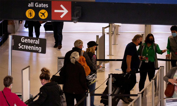 Hành khách qua khu vực sàng lọc tại sân bay quốc tế Seattle-Tacoma tại bang Washington, Mỹ ngày 12/4. Ảnh: Reuters.