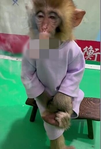 Trong video được sở thú ở thành phố Hành Thủy đăng trên mạng xã hội đầu tuần trước, một con khỉ mặc áo chui đầu, ngồi trên ghế gỗ và ngậm điếu thuốc cháy dở, mắt liên tục nhấp nháy. Một nữ nhân viên sở thú bước đến, lấy điếu thuốc đi và con khỉ dụi mắt, ngã vật xuống nền nhà.