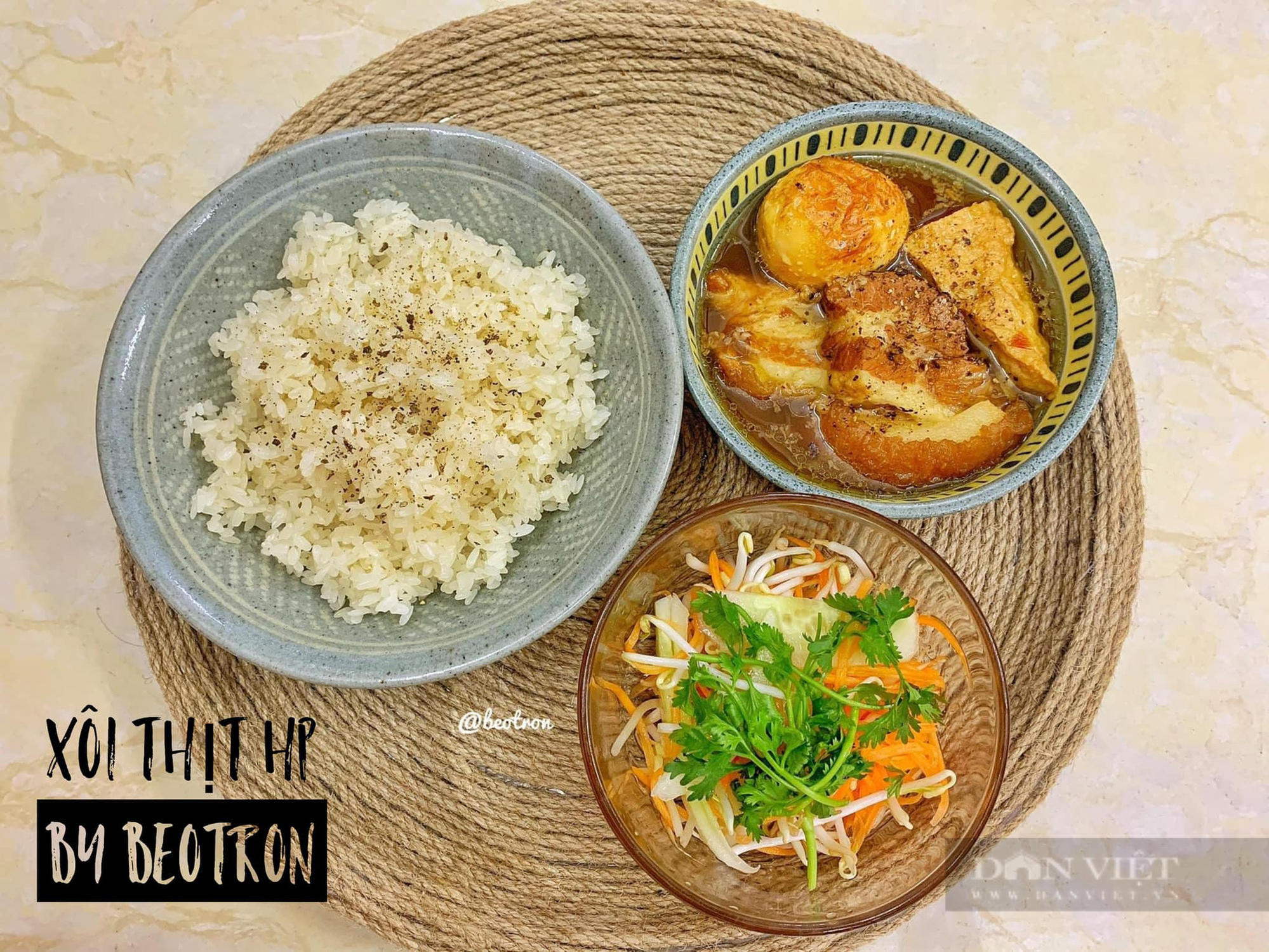 Thành phần chính của món ăn này là phần xôi dẻo được nấu từ gạo nếp và thịt kho đậm đà.