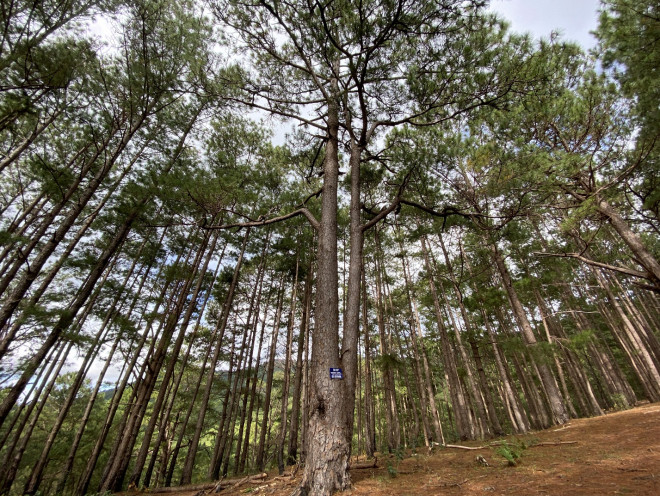 Con đường mòn bắt đầu nhỏ dần khi bắt đầu tiến vào rừng thông. Đó cũng là chặng thú vị nhất của hành trình khi bạn được “tắm” giữa một rừng thông xanh rì rào mát lạnh. Con đường mòn ngày đầu tuần hầu như không có bóng dáng các du khách. Thỉnh thoảng chúng tôi gặp vài bạn trẻ, vài vị khách nước ngoài lớn tuổi đi rất hăng hái. Bạn tôi bảo khó mà tìm thấy người Việt Nam tầm tuổi trên 60 đi leo núi. Mà biết đâu sau này chúng tôi ở độ tuổi đó cũng chẳng còn đủ sức mà leo nữa, nên tranh thủ lúc còn trẻ khỏe sẽ trải nghiệm thật nhiều.