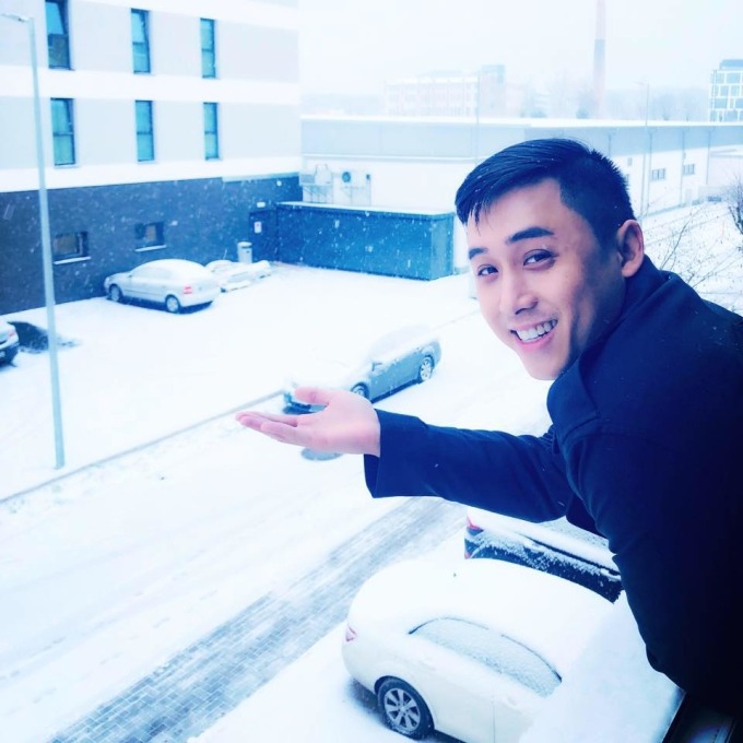 Vinh đi chơi tại Frankfurt am Main, Đức trong chuyến công tác năm 2018. Ảnh: NVCC