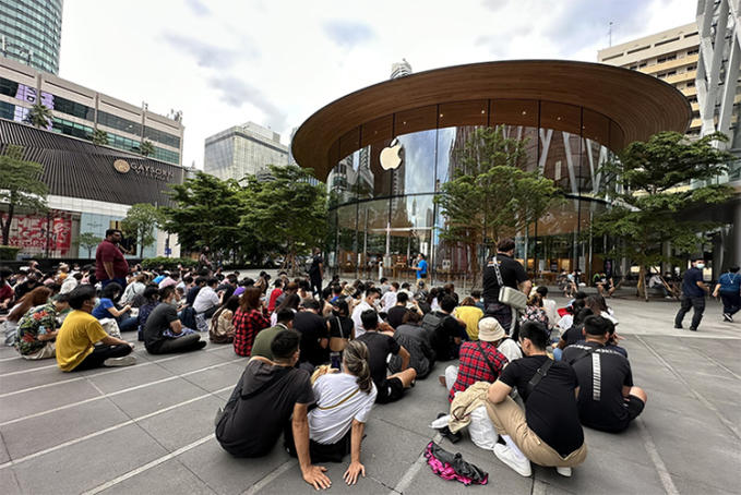 Xếp hàng bên ngoài Apple Store mới mở cửa ở Thái Lan. Ảnh: May Flashfly