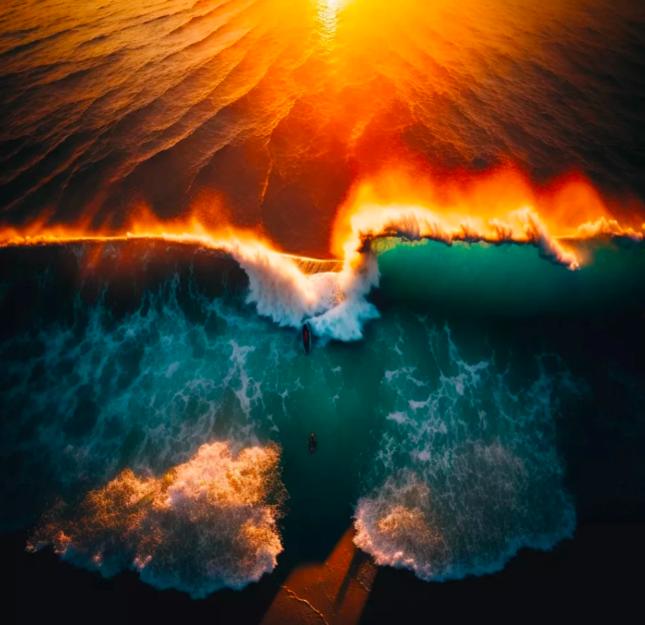 Absolutely AI - chủ nhân thực sự của tác phẩm này - đã sử dụng một chương trình tạo hình ảnh theo yêu cầu mang tên Midjourney. Absolutely AI chỉ đơn giản là nhập vào các lời mô tả như: Hai người lướt sóng, mặt trời mọc, ánh sáng đẹp, ảnh chụp bằng máy bay không người lái, sóng vỗ. Và thế là một tác phẩm được tạo ra, lấy cảm hứng từ vô số bức ảnh đã được tải trên mạng trong nhiều năm qua.