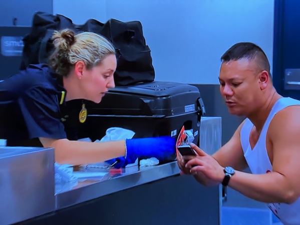 Một người đàn ông nhập cảnh bị chặn lại bởi hải quan.