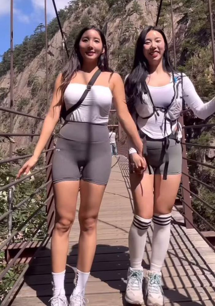Mới đây, khoảnh khắc cặp đôi nữ gymer người Hàn Quốc đăng tải nhiều hình ảnh diện đồ tập gym leo núi gây chú ý.