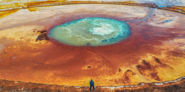 Đó là do hàm lượng lưu huỳnh cao nên khu vực quanh suối không có cỏ, cây cối hay bất kỳ sinh vật sống nào tồn tại. Giữa một không gian rộng lớn vắng vẻ, chỉ có một con suối có màu sắc kỳ dị không ngừng phun nước lên.