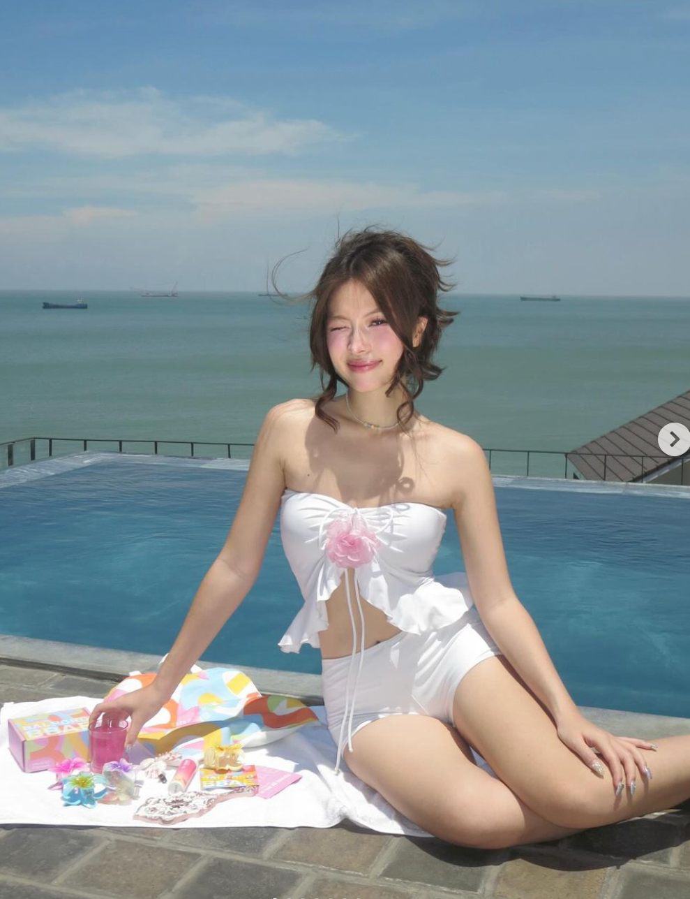 Vừa qua, cô nàng đã có chuyến du lịch tại bãi biển, không phải bikini, người đẹp khiến công chúng bất ngờ khi lăng-xê kiểu quần ôm ngắn mix cùng áo croptop quyến rũ, trẻ trung.