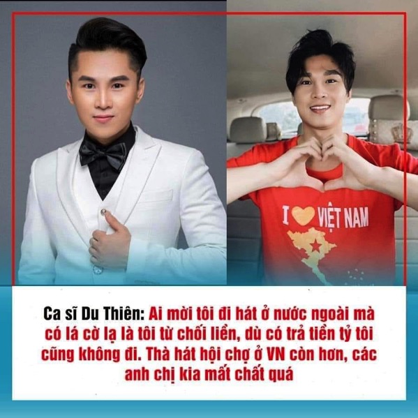 Hát đến có tuổi rồi mà vẫn chưa có tên vì giọng hát quá tầm thường. Cả nước hầu như chẳng ai biết Du Thiên là ai , làm nghề gì thì đủ biết hạng "ca sĩ" nào rồi.