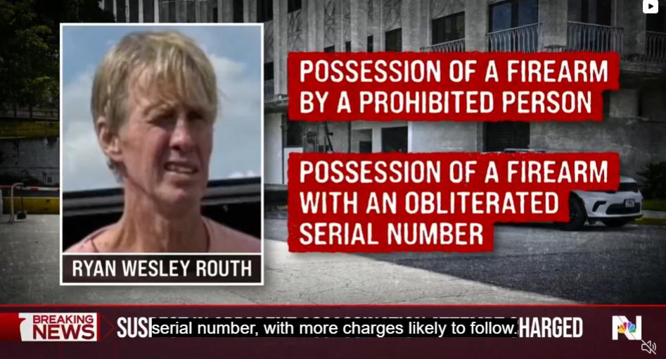Kể từ đó, Routh đã bị buộc tội tàng trữ vũ khí của một tội phạm bị kết án và tàng trữ vũ khí có số sê-ri bị xóa. Ông ta sẽ phải ra tòa vào thứ Hai.