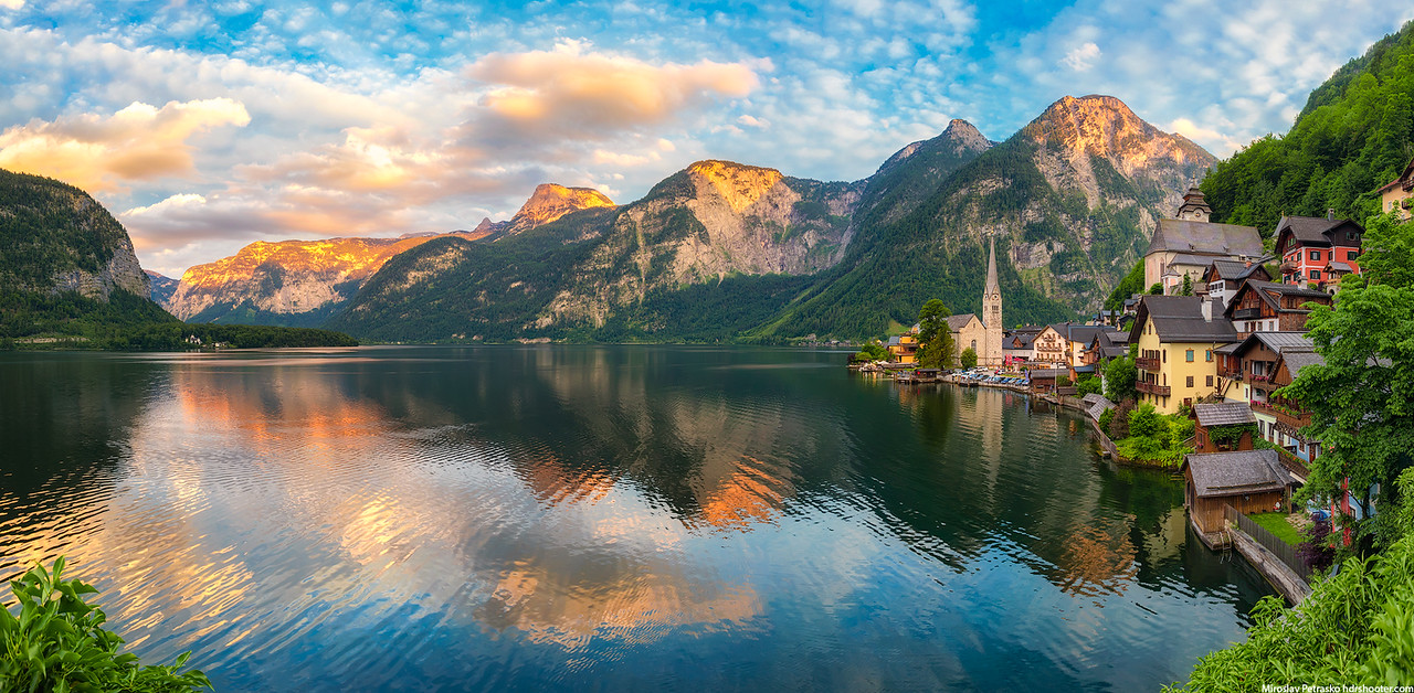 Hallstatt như một cô gái đẹp hoàn hảo từ mọi góc nhìn. Từ dưới nhìn lên từng nếp nhà thoai thoải trên núi, có lẽ ai cũng nhen nhóm trong lòng mơ ước mình được một lần trong đời sống trọn vẹn nơi đây. Từ trên nhà thờ Công giáo trong làng nhìn xuống, phóng tầm mắt ra xa, từng nếp nhà thoai thoải xuống mép nước, kiêu sa trong nắng sớm. Dãy Alps vây bọc trùng điệp xung quanh, dòng Hallstatter xanh thăm thẳm, từng ngôi nhà gỗ yêu kiều soi bóng xuống mặt nước, tất cả tạo thành một vẻ đẹp làm say lòng người lữ khách.