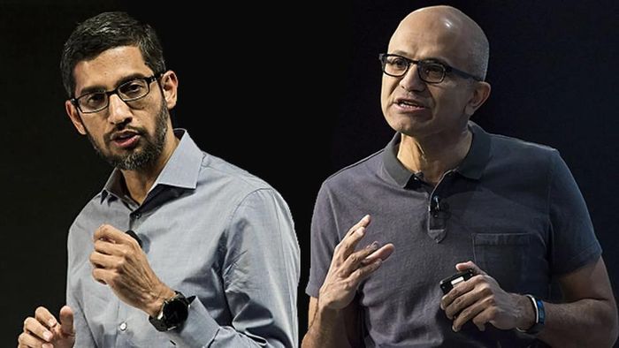 Sundar Pichai, CEO của Google và Satya Nadella, CEO của Microsoft. Ảnh: Bloomberg.
