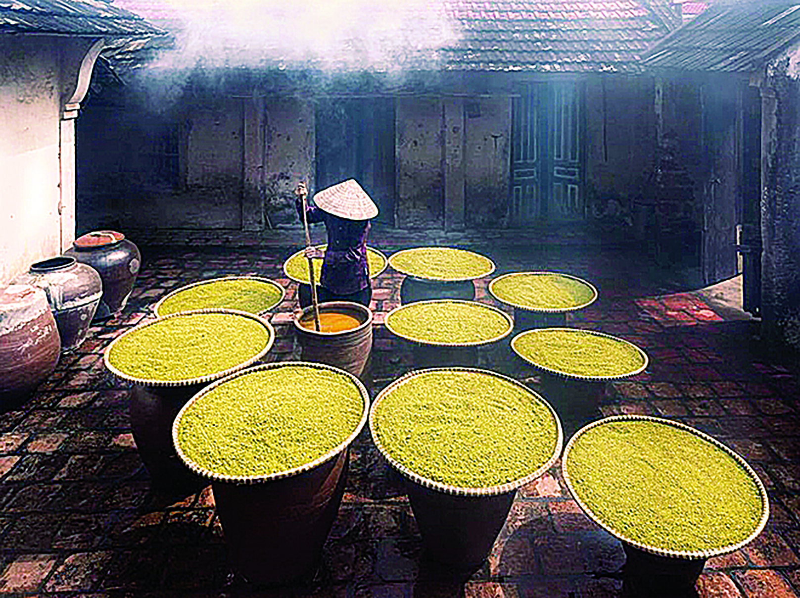 Con tôi bảo: "Bố lại ăn món ký ức đấy à?". Mùi dưa, cà, tương, có khi thêm ít hương quả thị mùa thu thơm thi thoảng. Lắm lúc mềm lòng với mùi cá bé bằng đầu ngón tay ướp trong gạo rang cả năm ròng, giờ nướng trên than củi mà nhâm nhi kể chuyện cũ. Rằng mỗi lần đi về thị xã là bà tôi chất đầy quả cà ghém vào bao tải, vứt lên sàn xe khách, dẫm chân lên kẻo sợ mất trộm. Rồi bà ướp cà muối, vác các hòn đá nhẵn thín nặng dăm bảy cân từ ngoài suối về, chẹn vào vại cà, giữa đá và các quả cà bẹp dí là một lớp phên tre đan mắt cáo để tránh cái bọn bị dầm muối trồi lên thì sẽ bị hỏng.