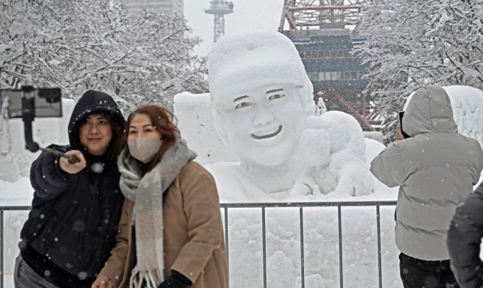 Một tác phẩm điêu khắc bằng tuyết của cầu thủ Shohei Ohtani của Los Angeles Dodgers tại lễ hội tuyết Sapporo. Ảnh: AP