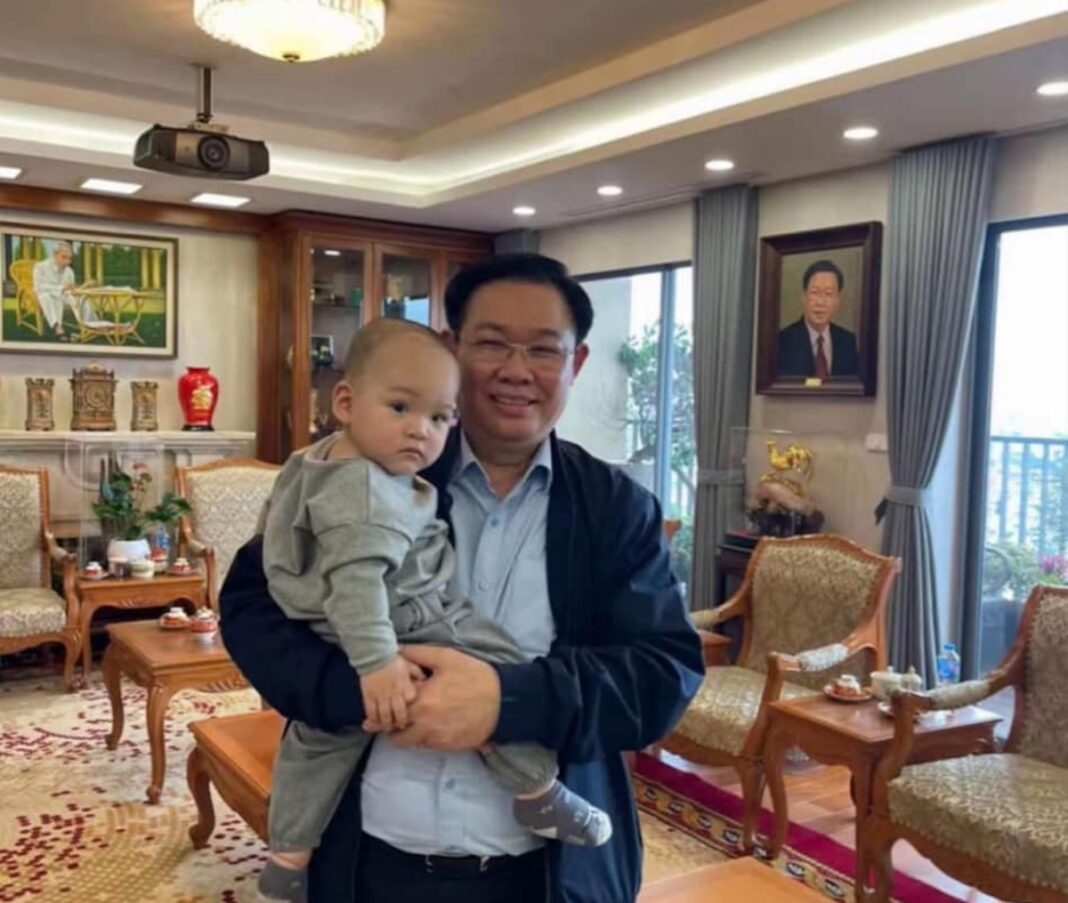 Sau gần một năm bị mất ghế ''trong đau đớn''. Mới đây, hình ảnh ông Vương Đình Huệ được nhìn thấy bế cháu nội tại tư gia.