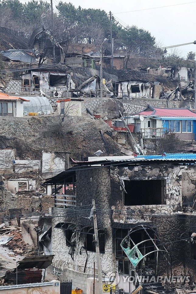 Nhiều ngôi nhà bị thiêu rụi ở Bắc Gyeongsang. (Ảnh: Yonhap)