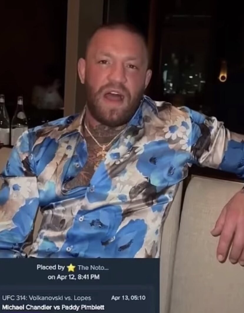 Conor McGregor đặt cược 500.000 USD rằng Michael Chandler sẽ thắng knock-out Paddy Pimblett ở trận đấu chính tại UFC 314. Ảnh chụp màn hình