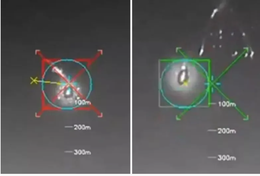 Ảnh chụp màn h́nh này từ một đoạn clip do t́nh báo Ukraine đăng tải cho thấy góc nh́n từ hệ thống nhắm mục tiêu của máy bay không người lái hải quân Magura khi giao tranh với máy bay chiến đấu Su-30 của Nga trên Biển Đen. Ảnh Getty