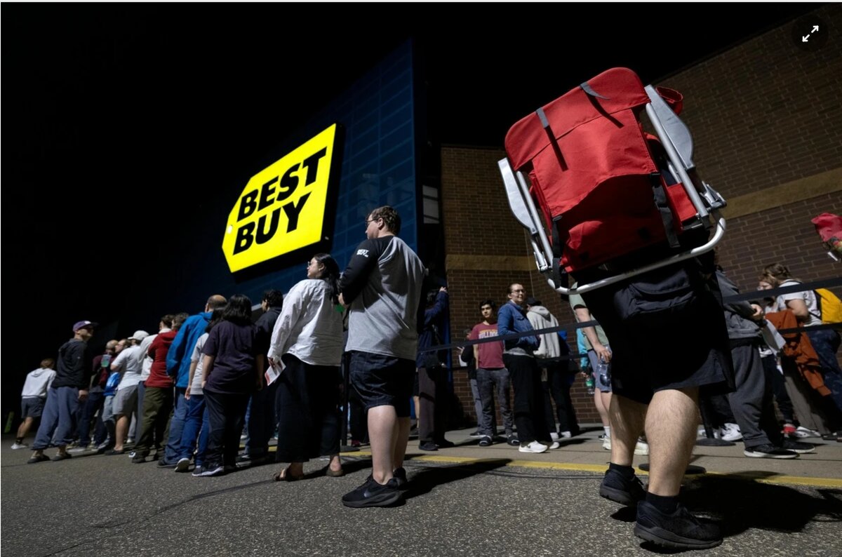 “Tôi chỉ trông chờ vận may mà thôi”, Edgar Huo, một trong khoảng 25 người xếp hàng ngoài siêu thị Target tại Manhattan (New York) cho biết. Theo AP, những khách hàng đặt online chỉ cần chờ siêu thị mở cửa để lấy máy, nhưng một số ít người như Huo hy vọng có thể mua hàng tồn kho.